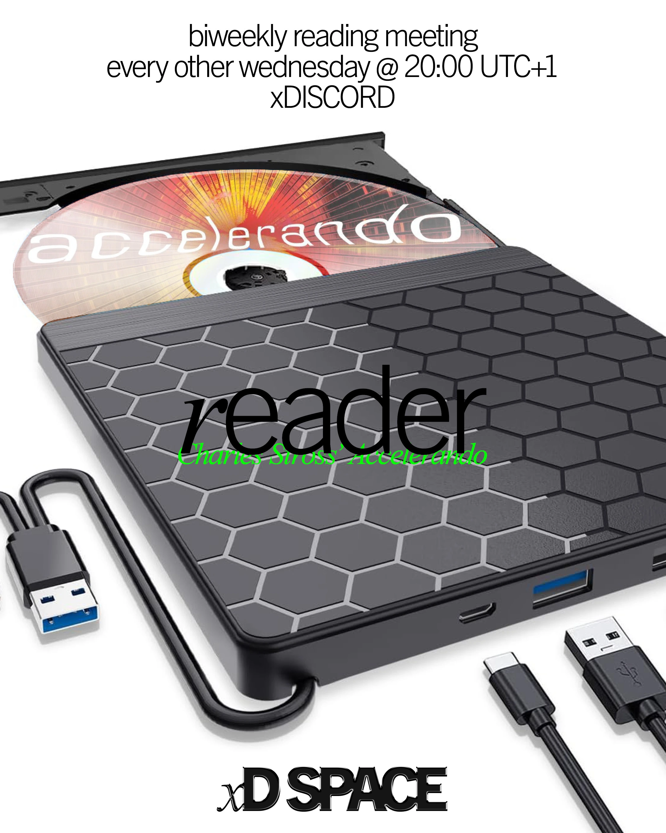 xD SPACE is meeting to scan, interpret, and process Charles Stross' Accelerando every other Wednesday on the xDISCORD until March 11, 2026.